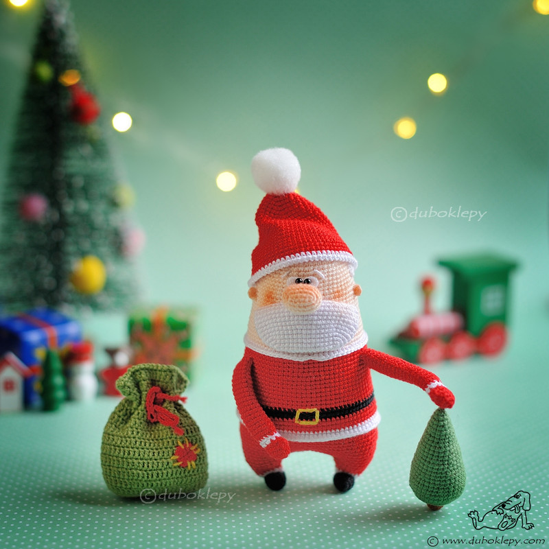 Электронный мастер-класс в формате pdf по вязанию крючком Деда Мороза в съемной шапке, с елкой и мешком.