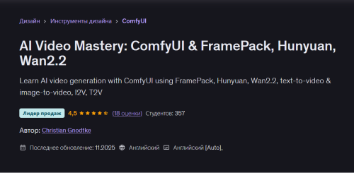 [Udemy] Создание видео с помощью ИИ: ComfyUI и FramePack, Hunyuan, Wan2.2 (Christian Gnodtke)
